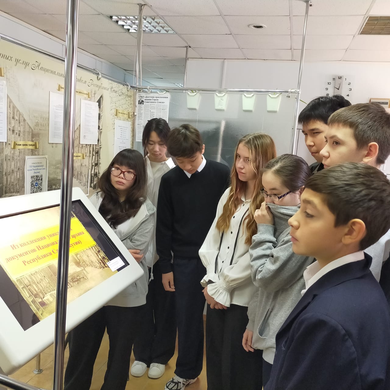 Начальник отдела научного использования документов Петр Корякин рассказал детям об истории Национального архива республики, об уникальных документах, хранящихся в его фондах.
