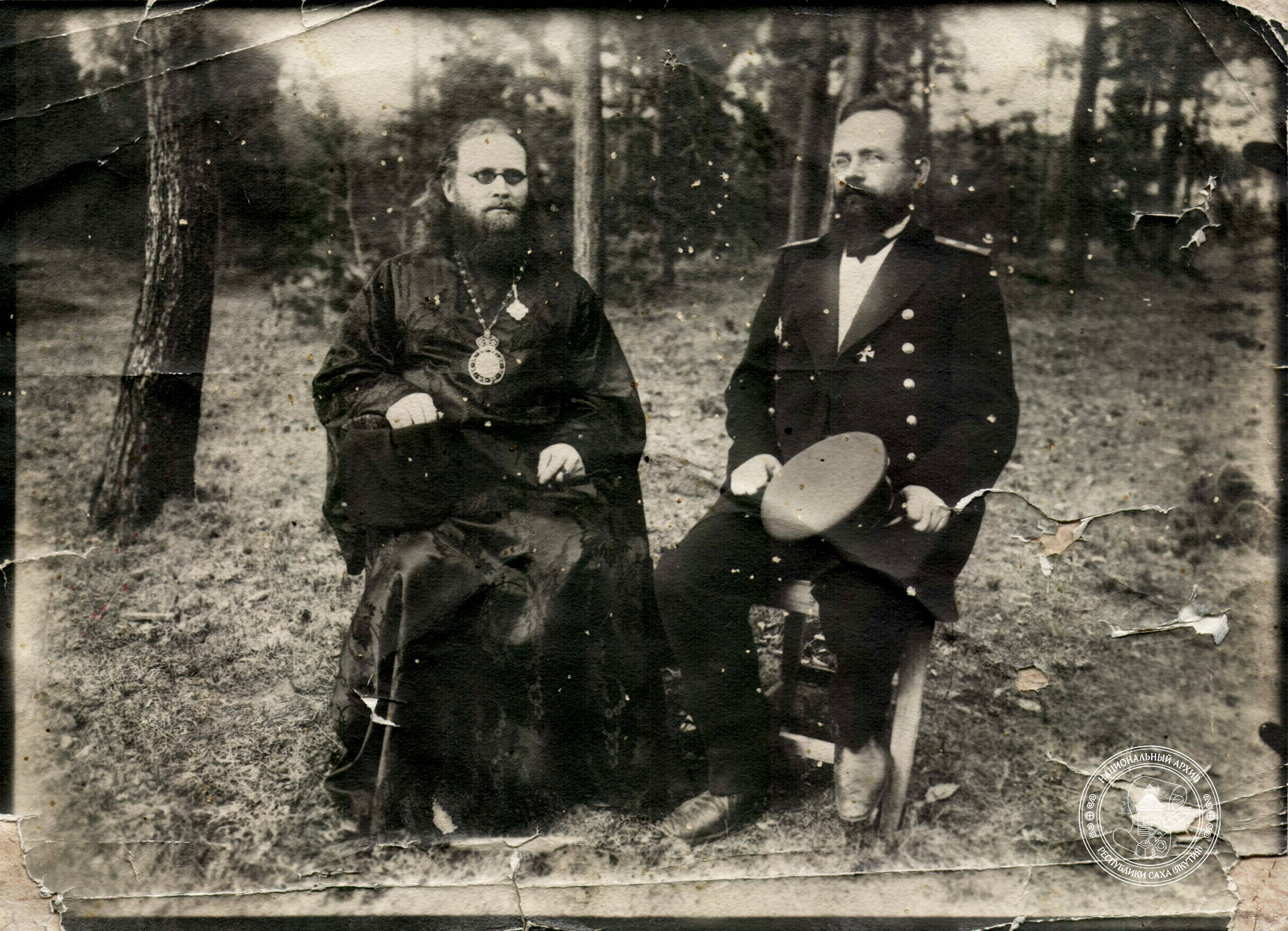 Епископ Якутский и Вилюйский Макарий и губернатор Якутской области Крафт Иван Иванович. Якутская область. Дата съемки: 1907-1913 гг.