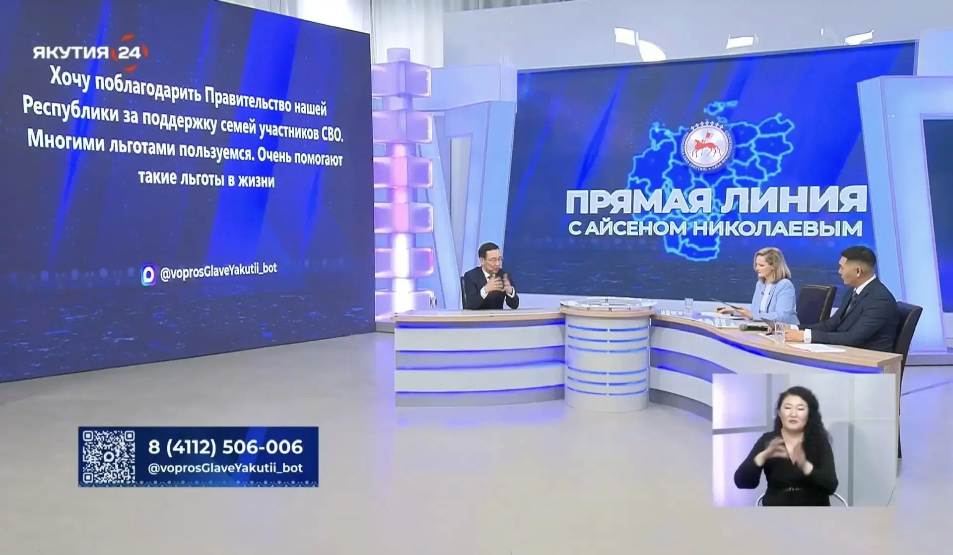 «Состоявшаяся прямая трансляция с Главой Якутии Айсеном Сергеевичем Николаевым стала важным событием для всех жителей республики. В ходе эфира глава региона подробно ответил на ключевые вопросы, касающиеся мер поддержки бойцов и ветеранов специальной военной операции. Работа на этом направлении ведется большая, комплексная и системная.